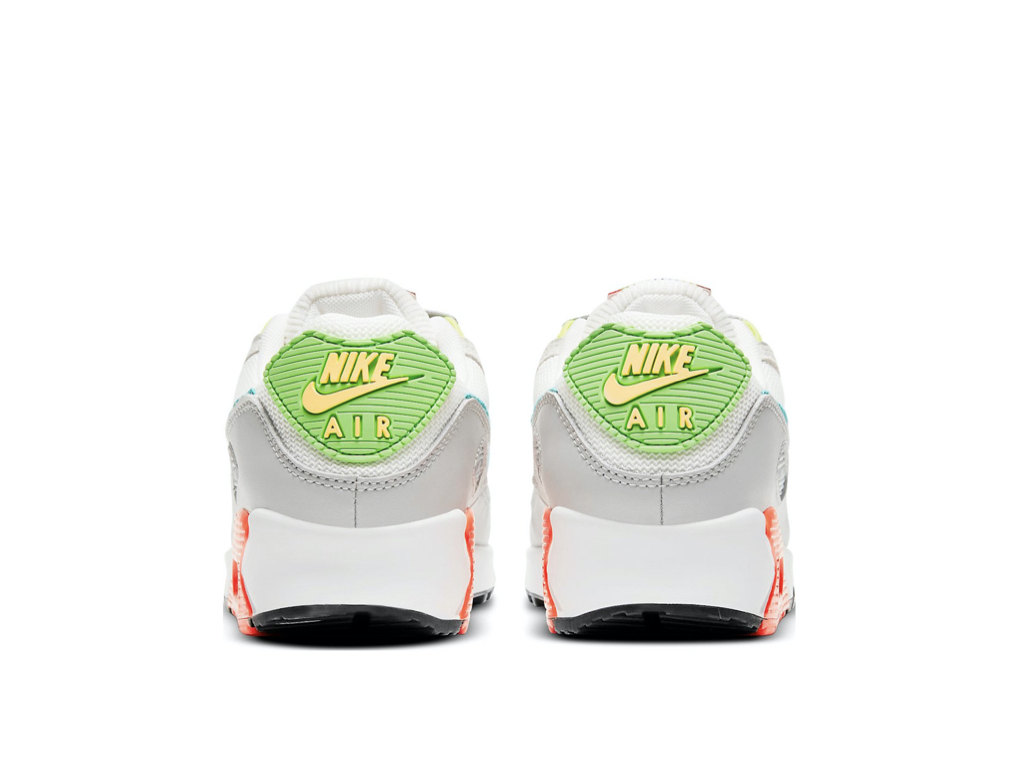 Each release from the EOI ( Evolution of icons )series has various multi-coloured accents, such as logo heavy insoles and the tongue. This Air Max 90 comes in a combination of light cream and grey tones on the upper. This fairly clean and understated combination is broken up by the rainbow-like elements on the upper, as well as on the midsole.