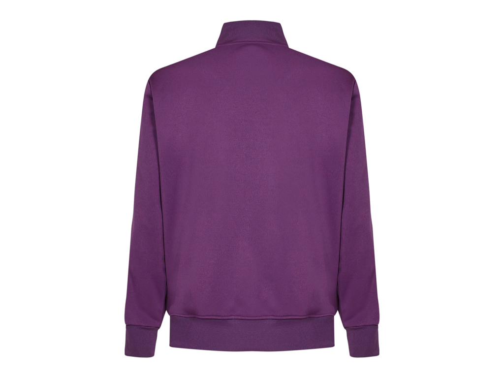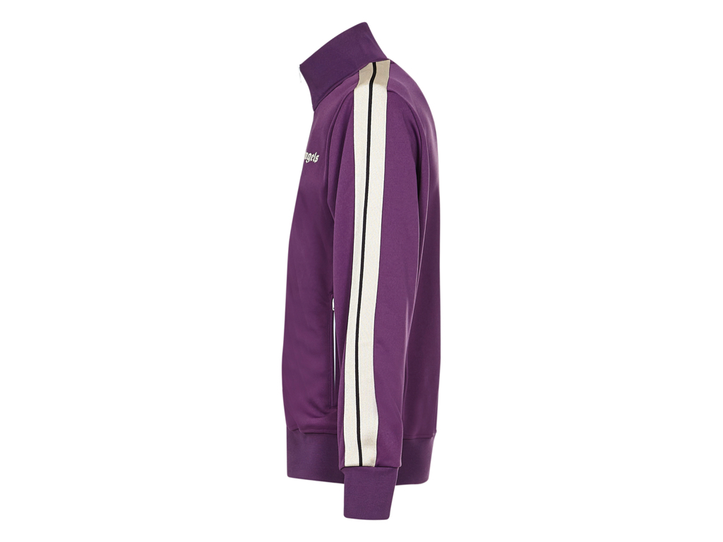 Purple Track Jacket featuring zip-on closure, zip pockets on the side, contrasting white band at sleeves, raised collar, lettering logo on the chest and rib-knit trims.