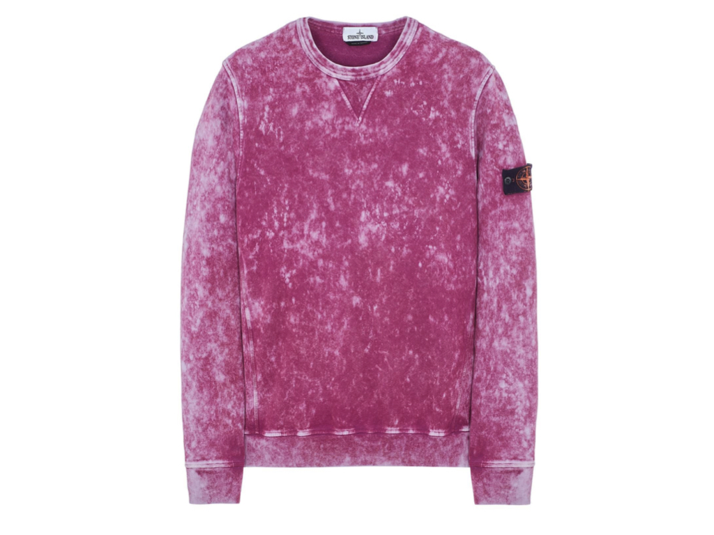 Crewneck sweatshirt in cotton fleece. The piece features the OFF-DYE OVD treatment: a cycle of reactive dye and resin treatment process with subsequent drying. The garments are then corrosion treated, washed and dried.