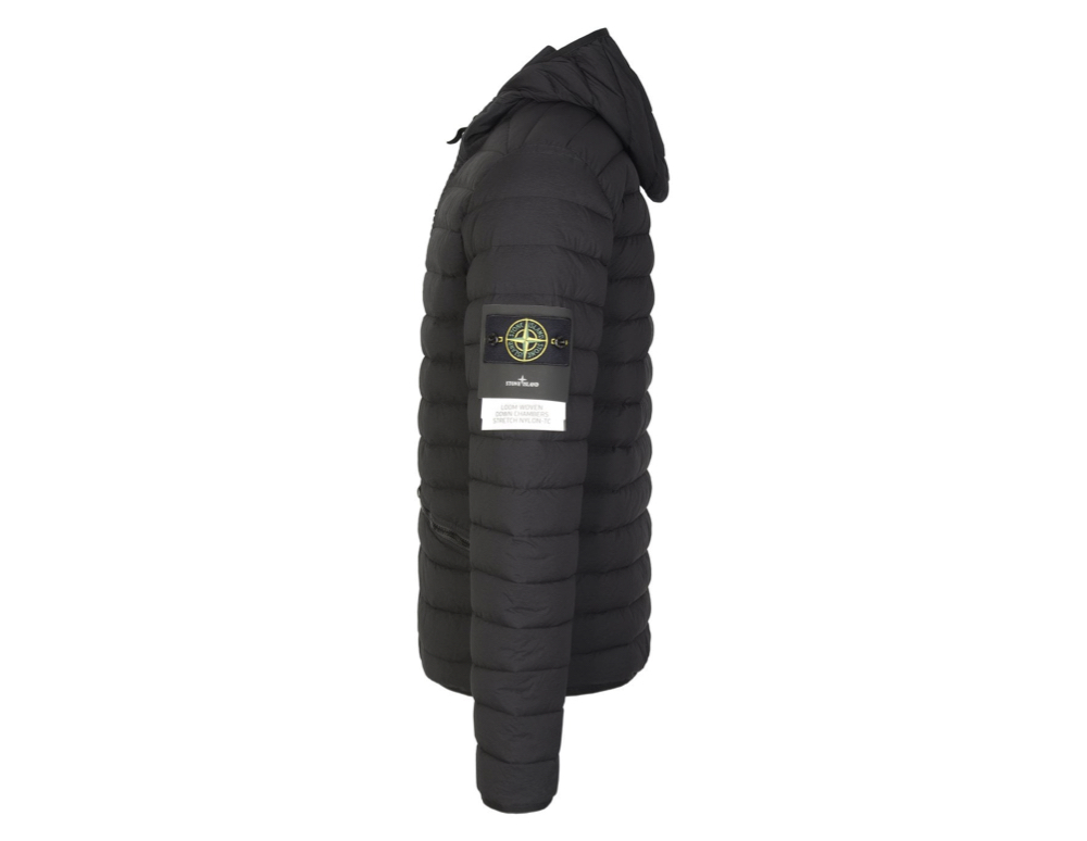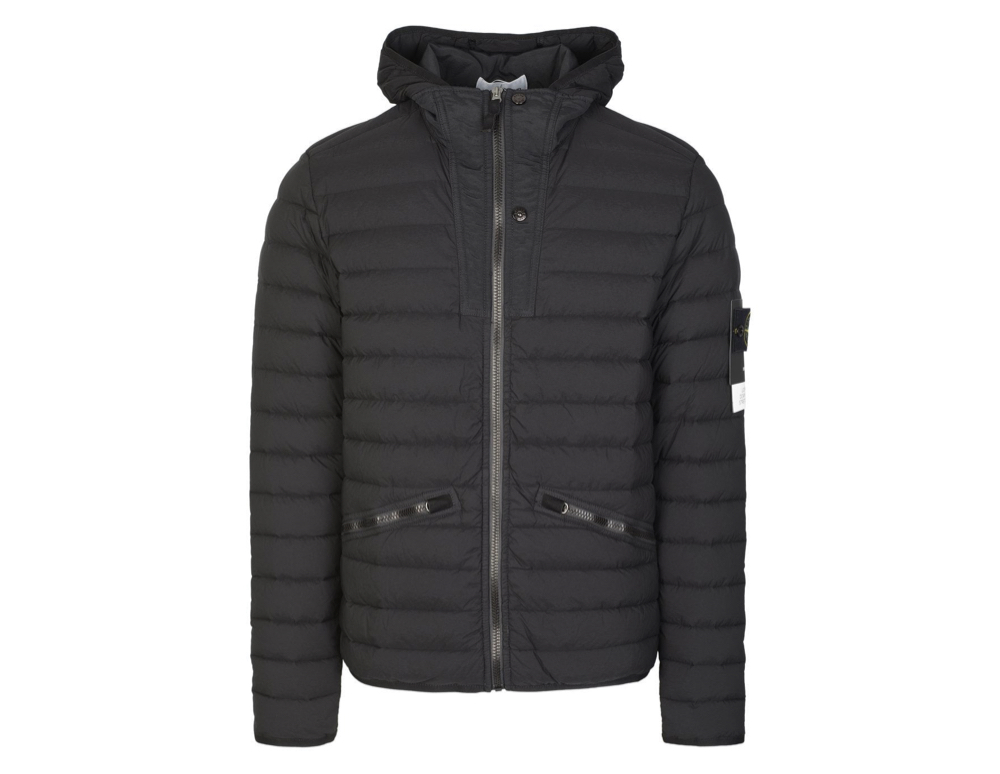 Brought to you by the iconic label, Stone Island. The expertly crafted jacket is created with a down finish for its durable and exceptional insulation. It features a zip closure, two asymmetric zip pockets, elasticated cuffs and hem and a padded hooded neckline. For added detail, the jacket is adorned with the brands signature badge logo, featured on the left sleeve for its recognizable finish.