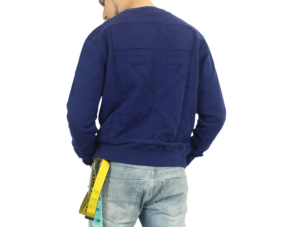Off-White ensures you will stay cosy and street-savvy all season in this blue crew sweat. It’s detailed with the label’s contemporary drowning man logo at the chest, while the iconic arrow cross motif takes up the entirety of the back in a textured and tonal way.