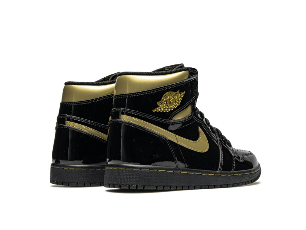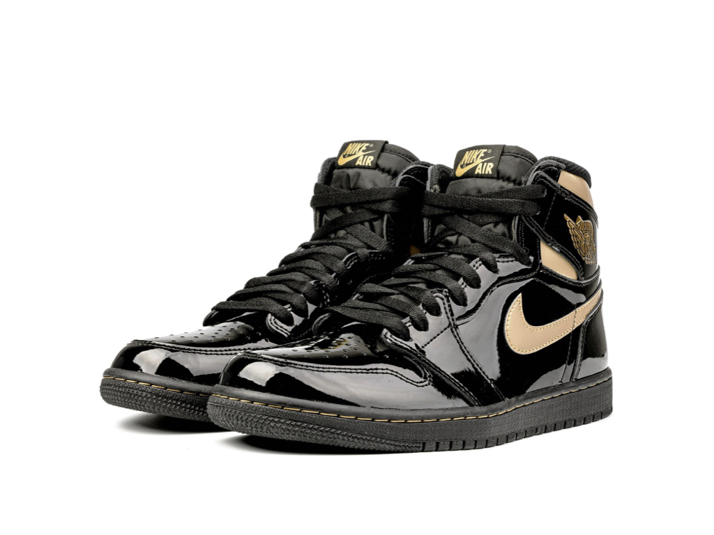 Dressed in a Black and Metallic Gold colour scheme. The shoe comes with a similar design as the Air Jordan 1 Mid from 2003, which was the first-ever patent leather Air Jordan 1 to release from the brand. It features a Black patent leather build with Gold patent Swooshes and ankle collar.
